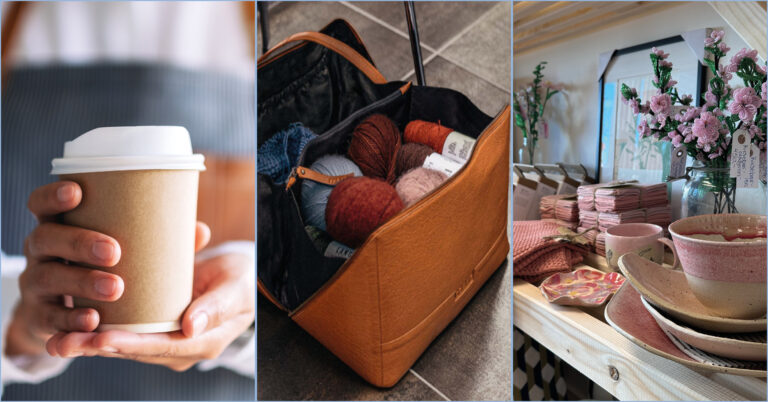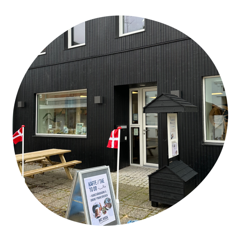 Omdrejningspunktet i vores kiosk er primært kunsthåndværk i mange forskellige former, materialer og afskygninger – men vi kan også supplere med coffee to go, en lokal sodavand, broderikits, strikkede karklude, kurve af genbrugsmaterialer og hvad vi ellers kan finde på.